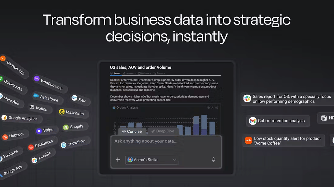 Supaboard is an Agentic Business Intelligence platform that understands your business context, not just your data. It brings your metrics, definitions, and business logic into one trusted layer, then delivers accurate insights in minutes. Connect to 600+ data sources, ask questions in plain English, and instantly generate dashboards and reports your whole team can trust.