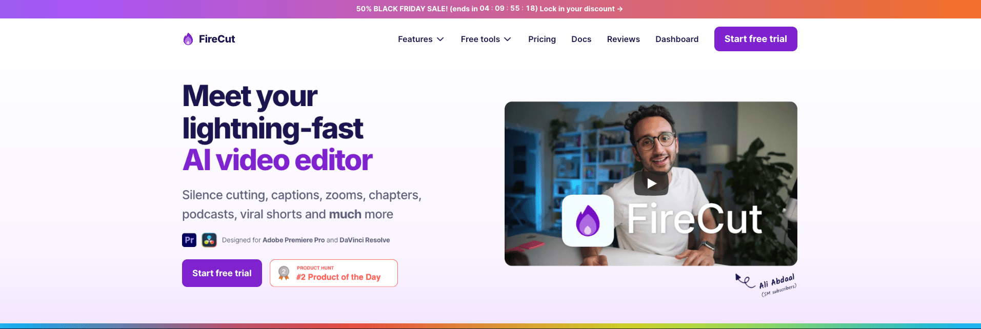 FireCut AI is a co-pilot for Adobe Premiere Pro that automates boring tasks (cutting silences, removing repeated takes, adding captions, detecting chapters, etc.) so you can focus on the creative stuff and get to your first cut quicker.